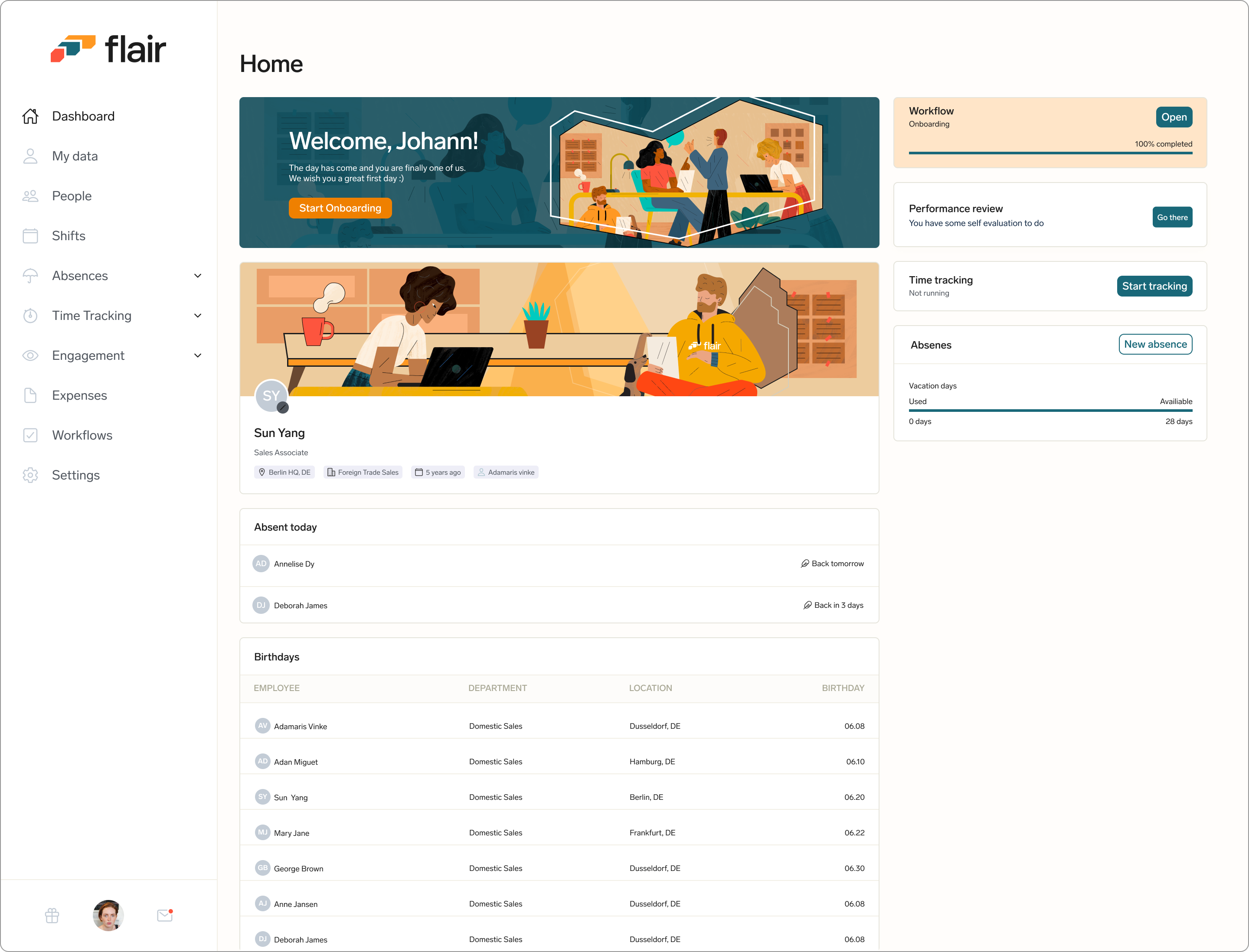 Flair's Employee hub app allows employees to access their data that is managed by their HR through Salesforce.