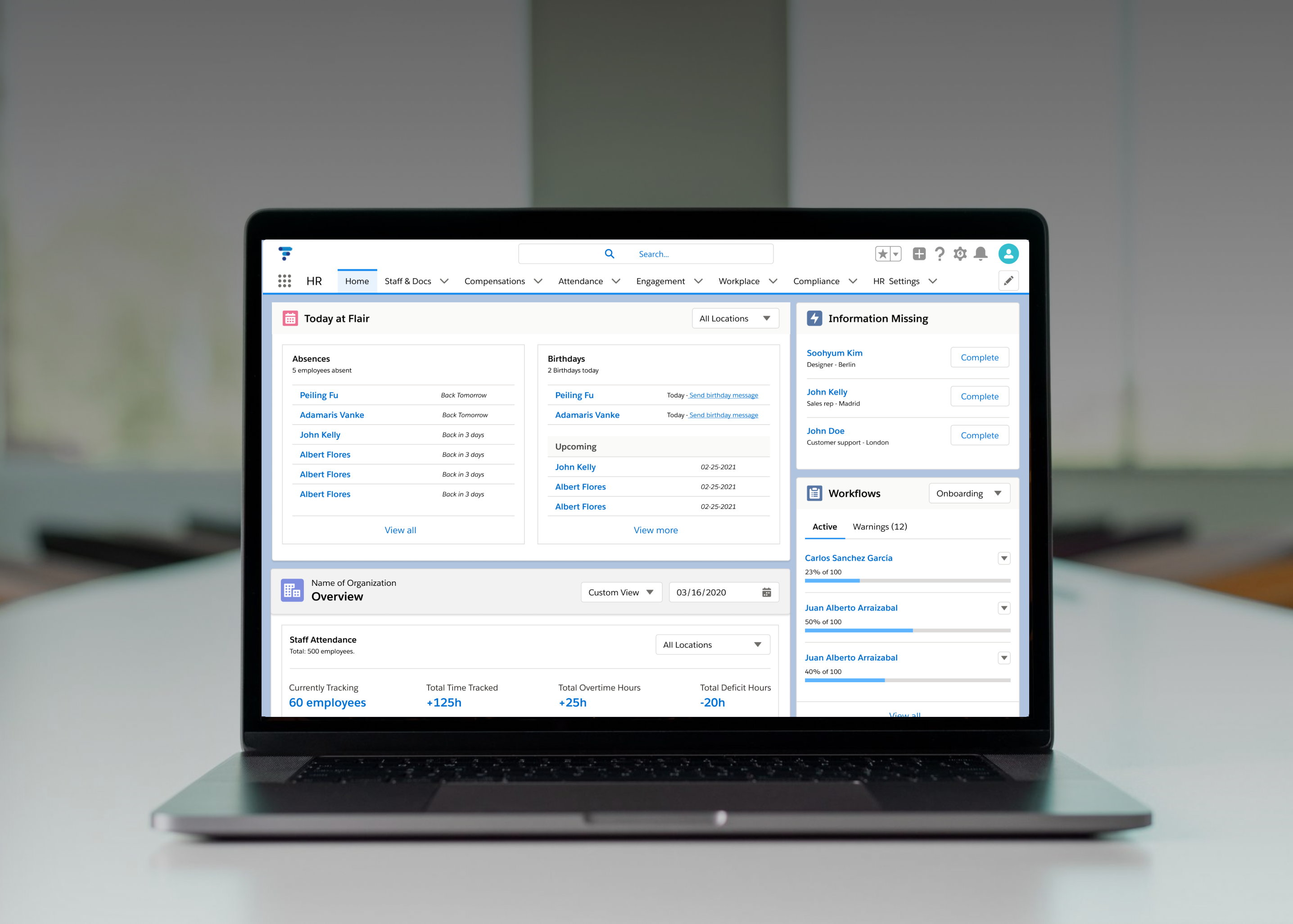 Flair is a complete platform built on top of Salesforce with customisable features for managing your HR department