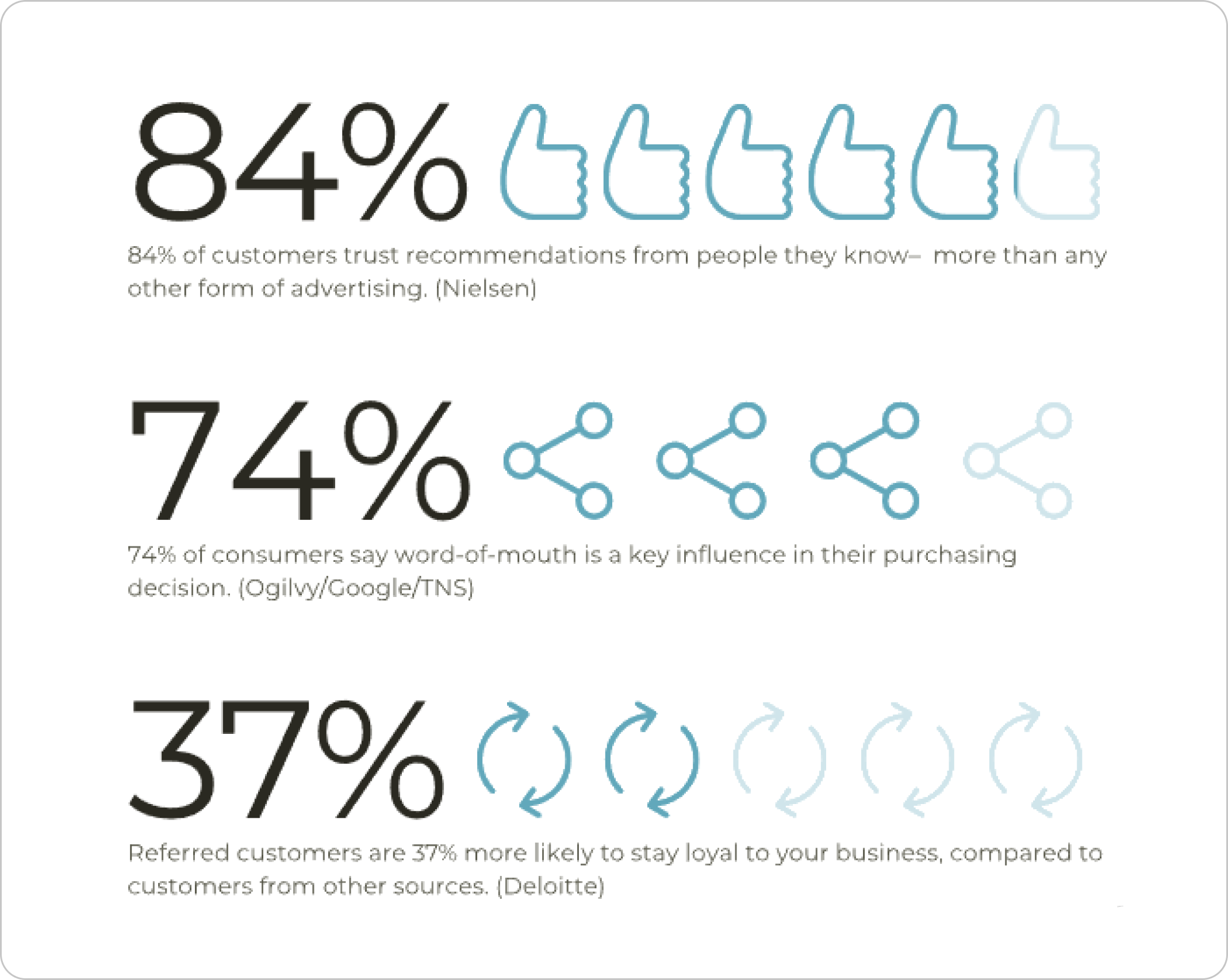 Our main challenge was to increase user engagement and retention on our platform and we were thinking of ways to do that without having to spend too much on marketing. Our strategy is to use word of mouth marketing as a tool for customer acquisition, and so, the idea of building out an in-app referral feature was born. It’s only natural to trust the word of friends who recommend a business more than any ads you see for the same company. Studies have shown that 84% of customers trust recommendations from people they know more than any advertising that comes from a brand.